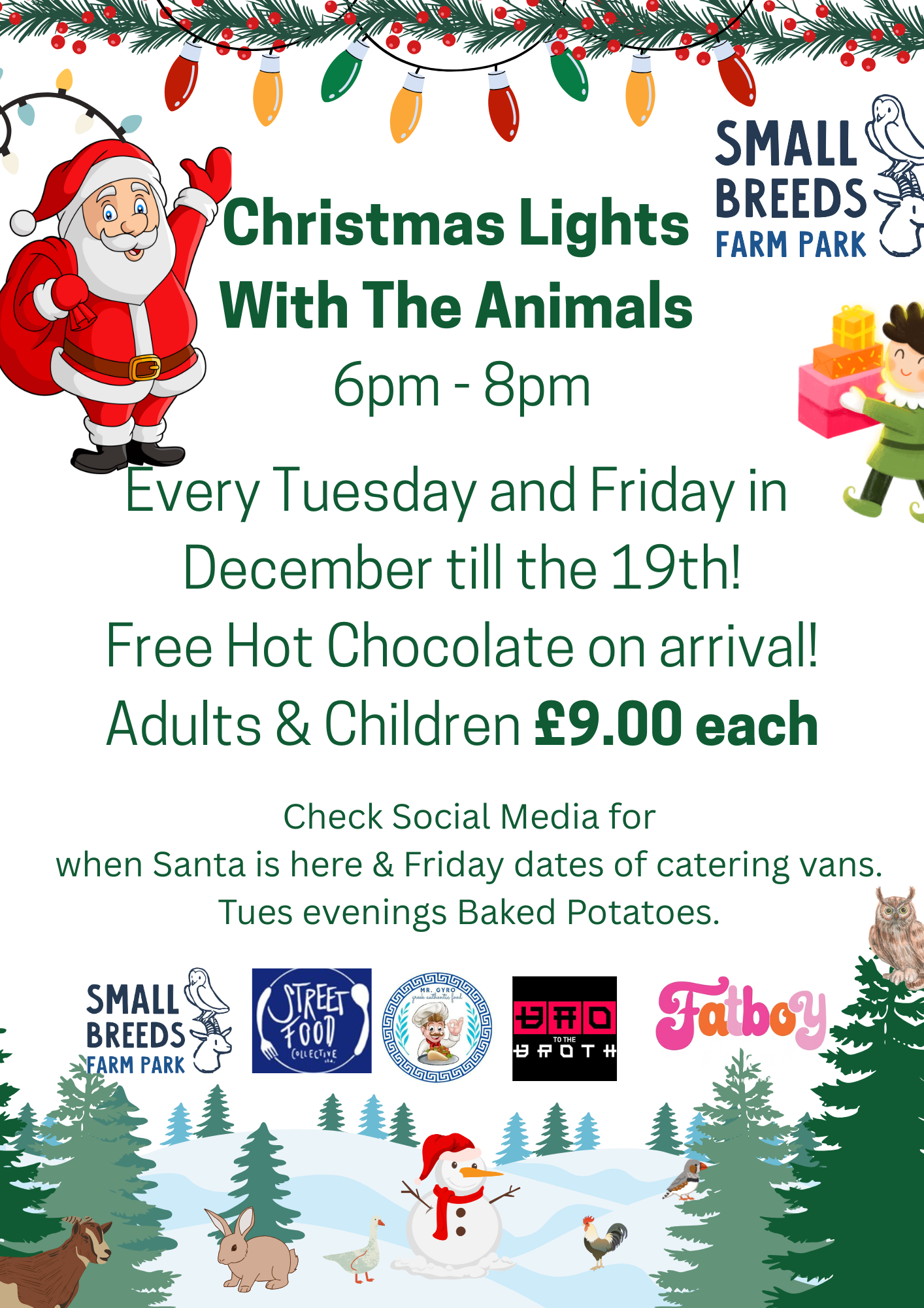 Santa – Please check our social medias to see when Santa is visiting Small Breeds Farm.